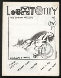 The fifth installment from April 1978 of this legendary LA rag. Coverage of the Dickies, Teenage Jesus & The Jerks, Black Randy. Oh, and a killer Screamers full-page ad. Issues of Lobotomy simply never seem to turn up!